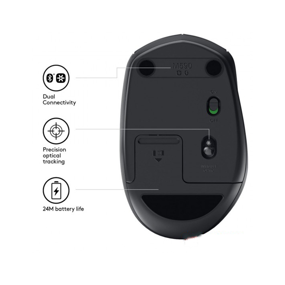 With the same click feel and over 90% noise reduction on the click sound, M590 delivers a quiet experience for you and your neighbors. Plus, M590 has feet made of high-performance material and a rubber wheel for quiet gliding and scrolling.