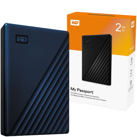 WD 2TB MY PASSPORT PORTABLE EXTERNAL HARD DRIVE – USB 3.0 – (2Y)