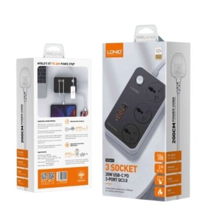 LDNIO SC3412 38W PD20W Power Strip 3 Socket Outlets and 3 QC 3.0 USB